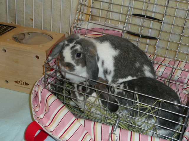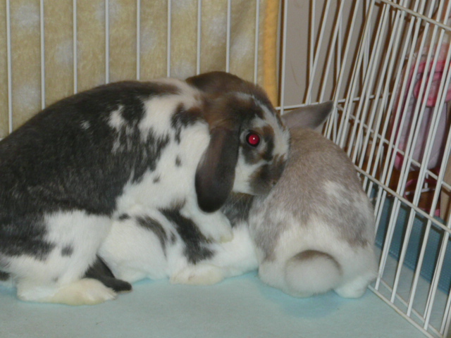 びっくりどっきりやったのね~」 そうです、ももちゃんある方との再会に お出かけしたのです ・・ってももちん何かちっちゃくない?? その子は ももじゃないのね おかあちゃの目はふしあな以下なのね」 ごめんよごめんよ ちょっと間違えたよ いるのら~!!」 お邪魔してます、空くん そうです、ももの姉妹、琴ちんのいる しもサン、しもヨメさん のお宅へ行ってまいりました (手前琴ちん、奥がもも) ももが2.2k、琴ちん1.6kで 大きさが一回りちがうので 区別はつきますが走り回ったりしてると 「え?もも?琴ちん?どっち?」 でも今日は親子姉妹再会がメインの 女の子祭り、空くんと福ちゃんは 存在感が薄かったのです(笑)でも最後に 福ちゃん空くんとご対面したあとにカクカク合戦へ・・ 勝利をおさめました 「やったのです」 初めての場所ながら時間が経つにつれ慣れてきて走ったりして遊んでたもも 琴ちんともご挨拶したりして慣れてきたところに 待望のご一行様がやってきました!! ちか子会長宅のミニョンママと姉妹のノワールちゃん、アムールちゃんです!! ミニョン一族によるうさぎ祭りが始まりました!! 女の子の順位付けがはじまります さすがミニョンちゃん母の貫禄 ぶっちぎり女王でした 琴ちんがちっちゃいのに負けずに挑戦していくのを見てびっくり さて、ではうちのももちんはというと・・・ アウェイな上にミニョンママ軍団に圧倒 ホームで応戦する琴ちんと違い 目が点になっているのもも 「何が起こってるのね~」 あかんねん~」 ヨネスケのようにミニョンママ ノワールちゃん、アムールちゃん 琴ちんの家にお邪魔していきます 琴ちんもものキャリーに突撃訪問 琴ちん、間違えた振りして 連れて帰りたいくらい可愛かった 避難するもも じっと抱っこされてました 「2号ちゃ、ももを守るのね」 じつは内弁慶なもも 新しい事実を発見しました パトさんのご馳走を写すのを忘れるバカくまお どれも美味しく、そして自分が 手抜き料理の達人ということに気づきました だって毎日なんてしんどいもーん ビールのキャンペーンガールのようにチャーハンをもって 微笑むすがわらさんの写真やハロウィンということで被り物をかぶって はじける皆様の写真を載せたいと思いつつぼかす技術とそこまでの度胸は くまおには有りませんでした きっとしもサンがアップしてくださることでしょう(笑) ママがももたちを産んでくれたから こんな楽しい時間を過ごせたよ (あ、ジャンパパもありがとう) ももが美うさなのはママに似たんだわと すごく納得したくまおでした そしてこれもママの遺伝なのが良く分かったよ 「じーっ」 なぜか上を見つめるうさぎ達・・・ 彼女達は 助走もなく軽やかに跳ぶ もう素晴らしいというしかない 跳びっぷりでした まさに親子 「ちゃうもん!!よそのおうちやさかい 行儀ようええ子にしてただけやもん!! その気になったら負けへんもん!!」 ええよええよ、お母ちゃんはももが どんな子でも一番可愛いし ![]() しもサン、しもヨメさん ちか子会長、パトさん すがわらさん 楽しい集まりに誘っていただいて本当にありがとうございました かぶり物、急ごしらえで始末も中途半端ですが どうぞかの地でかぶってはじけてきてください 楽しみにしてます PR