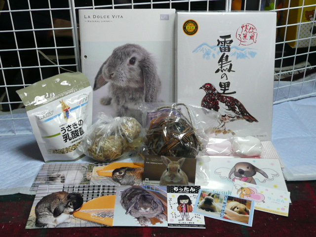 あたし大きくなってんで 名古屋でな琴ちんの体重聞いて 気になったおかあちゃんに測ってもろてん 名古屋の準備でここちょっと測れてなかったももの体重 1200g、堂々の1k越えでございます ![]() ![]() 琴ちんは850g、NOVA君が1キロ越えたよ~というなか さすがももちん、お見事です 続けていたのが 「美味しいものは膝の上 」キャンペーン成果が現れおやつやえん麦を用意すると えいしょえいしょ膝の上にのってきます くまお旦那、撃沈・・・ 「なぁ、おやつやっていい?いいか?」 しっかりうさぎバカになりつつあるくまお旦那 「あんな、この前キャリー持った人おったから ちょっと覗いたら中、猫やってん うさぎやなかってちぇっと思った俺ってうさぎバカ?」 ・・・うん、立派なうさぎバカやと思うよ 普通犬か猫でしょ、まず外でうさぎ入ったキャリーは めったに見れないと思うよ 「ん?ちったんさんに頂いたおやつに こんなん入ってたから雪山と雷鳥の写真を・・」 「おかあちゃ 」「ごめんなさい・・・」 PR 完結しているうさぎ祭り 仕事に家事にばたばた追われ まだ引っ張っております(苦笑) 撫でてもろたり、福ちゃ~んて 声かけてもろたりして楽しかったでぇ」 でっかさのおかげかおまぬけ顔のおかげか 福ちゃん見て笑う人続出 そうそう笑ったらええ事あるよな。 EX立派にお勤め果たしました 一般開場まではそれなりに風も吹いて涼しかったんですが うさ飼いさんの熱気と雨が上がった後もあって一気に暑くなりました この時期はほんと天候が読めませんね、うさちゃん連れの方大変だったと思います 2号、前日までのお泊り学習の疲れが抜けてないのと暑さにあたったのかで ちょっとふらふら、大事をとって撤収時間になったので早々に片付けて家路に向かいました 「お帰り、2号ちゃ 」車でゆっくり休んだのと家に戻った安心感で すっかり元気になってました 「あぅぅ~、お土産はどこでしゅか?」 はいはい、ちょっと待ってな あわあわして何もお返ししてないくまお あぁ、ほんまだめだめ ぷうちゃんママから頂いたびわの葉ボール びわの葉は即日無くなり今は柔らかチモシーを 毎日つめてます 福ちゃんを描いてくださいました!! お会いしてこの事はすぐに聞いて 見たくて見たくてたまらなかったんやけど ぐっと我慢して 帰り車に乗ってすぐに見ました 泥棒顔で鼻のところが真っ黒け ほっぺもまるっとしてるぅ~ 一日頑張った疲れも吹っ飛ぶ一枚でした ちったんさん、ほんとありがとうございます 「おかあちゃん、服べたべたで気持ち悪い あっちに欲しいシャツあるねん、サイズもあるねん 買うてきていい?」とシャツゲット!! あとはうさ漫画にやっと手に入れた「部屋うさ」 大阪の時に買ったつもりで買い忘れるというくまお 今度はちゃんと買いました この本もさっさと奪われ今2号が学校の朝読書で読んでます 母ちゃんも読みたいです、貸してください ももちゃんへのお土産は閉場直前メーカーさんが配布してくださった牧草 人だかりに「偵察して来い!!」とまず1号を派遣 袋を抱えて帰ってきた1号「おかあちゃん、タダや!!行け!!」と言われ くまおも走る!!ゲットしました。無料の響きに弱い一家です その姿を しもサン たちにしっかり見られていたがしもサンたちもしっかり同じ袋を 握っていたのを私は知っている 初めてだらけのことで危うく直前逃亡するところでしたが 本当に行って良かったです 皆さんのおかげで無事終わることが出来ました ありがとうございます 次は大阪に向かって頑張ります ・・・って3日間、どうするねん? どんだけ商品作るらなあかん?今度は4人では行けないぞ また逃亡したくなってきた・・・