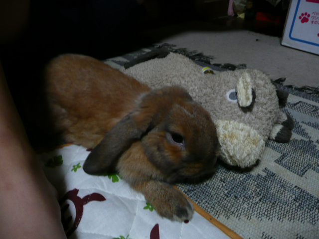 あわてて押入れから毛布を引っ張り出しました たんすの中身も急遽入れ替え あぁ、しんどい うさの小屋にも毛布をぐりんちょと巻きました 福ちゃんの大好きな大理石もようやく撤去 うちのストーカーうさぎ福ちゃん 「ぶぅ♪ぶぅ♪」毎日嬉しそうに誰かを追いかけてます クラブから帰宅したばかりの2号に「かまえ!!」とストーキング 夕食後くつろいでる旦那の足に引っ付く 誰かが立つとついて回って足元をくるくるくるくる とっても楽しそうに遊んでるのでついついかまってしまいます 本兎もかまってもらってご機嫌 でっかい福ちゃん以上のわんこうさぎっぷりです ももは眠いのね~」 くーくー気持ちよさそうな ももちん この頃すごくリラックスした体勢で 寝てることが多くなりました 福ちゃんが来た事でお姉さんになったのかお迎え当初のような 「お母ちゃ~ん」というようなぺたぺたはなくなり なんか今はお友達感覚に近いのかな? べたべたしないけど気が向くとふらーっときて 「なぁなぁ」とちょっかいかける でもケージから「なでて~」とじっと見つめてるところなんかは 変わってなくて可愛いなぁ 福ちゃんが猛烈ストーカーなので ももがすごく大人に見える今日この頃・・・ |