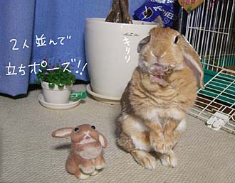 体重は1.5キロ よく食べよく出し 今日も元気です 2うさがいると個性の違いに驚いたり楽しんだりするのですが オスとメスの違いもあって基本的に正反対な性格の2うさ してもするっと逃げてしまう、 じゃぁなでこが嫌いかというとそうでなく ケージから「おかあちゃ、ももをなでるのね~」 と熱い視線を送ってくる ケージ越しに延々となでるなでるなでる やんちゃ盛りなので逃げたりもするけど 基本なでこ大好き 「うきゃきゃきゃ~」 気持ちよくて手がびにょーんと伸びて なすがままになる福ちゃん 福ちゃん、人の後をついてまわるのが大好き 誰かが立って移動しようとすると 「どこどこ?なぁなぁ、どこ行くん?」と追いかける トイレだったりしたら先回りしてトイレ前で通せんぼ 突然足元にやってくるので蹴っ飛ばさないようすり足基本ですな (今年の福ちゃん) (去年のでっかい福ちゃん) あと挟まるようになりました(笑) でっかい福ちゃんもよく挟まってました 面白いもんですねぇ、ちなみにももは散歩中手をかけてきたり 鼻でつんつんする事はあっても挟まることはないです くまおのでかい尻は 掘りたくなるのか挟まりたくなるのか わんこうさぎだったでっかい福ちゃん 戻ってきてもやっぱりわんこうさぎか? 家族皆ついて回る福ちゃんに目じりが下がってます ・・・ただ1つでっかい福ちゃんと違うのは ぷりてぃーももがいる為に生後3ヶ月ちょっとながら すごくおませさんな福ちゃん やられました・・・跳びシッコ ももちゃんの匂いに反応して大興奮 ろば子ちゃんもらぶぅです でっかい福ちゃんの写真じゃないのです・・・ 生後3ヶ月ちょいの福ちゃんなのです(泣) 散歩中は気になるものがいっぱいで 興奮しっぱなしの福ちゃん あんまり興奮させすぎたら 良くないし、どうしようか悩んでます ももの匂いに興奮するならさんぽの順番を逆に・・と思うが そうしたらもものご機嫌が最悪でこちらも怒りの跳びシッコ むーんむーん、どうしたらいいんだ