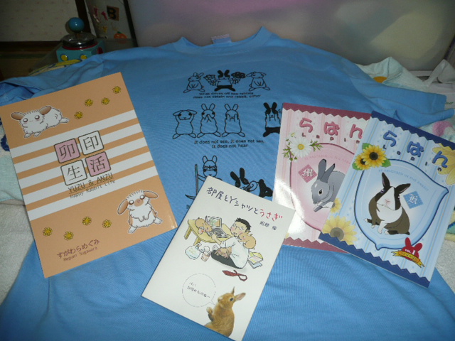 あたし大きくなってんで 名古屋でな琴ちんの体重聞いて 気になったおかあちゃんに測ってもろてん 名古屋の準備でここちょっと測れてなかったももの体重 1200g、堂々の1k越えでございます ![]() ![]() 琴ちんは850g、NOVA君が1キロ越えたよ~というなか さすがももちん、お見事です 続けていたのが 「美味しいものは膝の上 」キャンペーン成果が現れおやつやえん麦を用意すると えいしょえいしょ膝の上にのってきます くまお旦那、撃沈・・・ 「なぁ、おやつやっていい?いいか?」 しっかりうさぎバカになりつつあるくまお旦那 「あんな、この前キャリー持った人おったから ちょっと覗いたら中、猫やってん うさぎやなかってちぇっと思った俺ってうさぎバカ?」 ・・・うん、立派なうさぎバカやと思うよ 普通犬か猫でしょ、まず外でうさぎ入ったキャリーは めったに見れないと思うよ 「ん?ちったんさんに頂いたおやつに こんなん入ってたから雪山と雷鳥の写真を・・」 「おかあちゃ 」「ごめんなさい・・・」 PR 完結しているうさぎ祭り 仕事に家事にばたばた追われ まだ引っ張っております(苦笑) 撫でてもろたり、福ちゃ~んて 声かけてもろたりして楽しかったでぇ」 でっかさのおかげかおまぬけ顔のおかげか 福ちゃん見て笑う人続出 そうそう笑ったらええ事あるよな。 EX立派にお勤め果たしました 一般開場まではそれなりに風も吹いて涼しかったんですが うさ飼いさんの熱気と雨が上がった後もあって一気に暑くなりました この時期はほんと天候が読めませんね、うさちゃん連れの方大変だったと思います 2号、前日までのお泊り学習の疲れが抜けてないのと暑さにあたったのかで ちょっとふらふら、大事をとって撤収時間になったので早々に片付けて家路に向かいました 「お帰り、2号ちゃ 」車でゆっくり休んだのと家に戻った安心感で すっかり元気になってました 「あぅぅ~、お土産はどこでしゅか?」 はいはい、ちょっと待ってな あわあわして何もお返ししてないくまお あぁ、ほんまだめだめ ぷうちゃんママから頂いたびわの葉ボール びわの葉は即日無くなり今は柔らかチモシーを 毎日つめてます 福ちゃんを描いてくださいました!! お会いしてこの事はすぐに聞いて 見たくて見たくてたまらなかったんやけど ぐっと我慢して 帰り車に乗ってすぐに見ました 泥棒顔で鼻のところが真っ黒け ほっぺもまるっとしてるぅ~ 一日頑張った疲れも吹っ飛ぶ一枚でした ちったんさん、ほんとありがとうございます 「おかあちゃん、服べたべたで気持ち悪い あっちに欲しいシャツあるねん、サイズもあるねん 買うてきていい?」とシャツゲット!! あとはうさ漫画にやっと手に入れた「部屋うさ」 大阪の時に買ったつもりで買い忘れるというくまお 今度はちゃんと買いました この本もさっさと奪われ今2号が学校の朝読書で読んでます 母ちゃんも読みたいです、貸してください ももちゃんへのお土産は閉場直前メーカーさんが配布してくださった牧草 人だかりに「偵察して来い!!」とまず1号を派遣 袋を抱えて帰ってきた1号「おかあちゃん、タダや!!行け!!」と言われ くまおも走る!!ゲットしました。無料の響きに弱い一家です その姿を しもサン たちにしっかり見られていたがしもサンたちもしっかり同じ袋を 握っていたのを私は知っている 初めてだらけのことで危うく直前逃亡するところでしたが 本当に行って良かったです 皆さんのおかげで無事終わることが出来ました ありがとうございます 次は大阪に向かって頑張ります ・・・って3日間、どうするねん? どんだけ商品作るらなあかん?今度は4人では行けないぞ また逃亡したくなってきた・・・