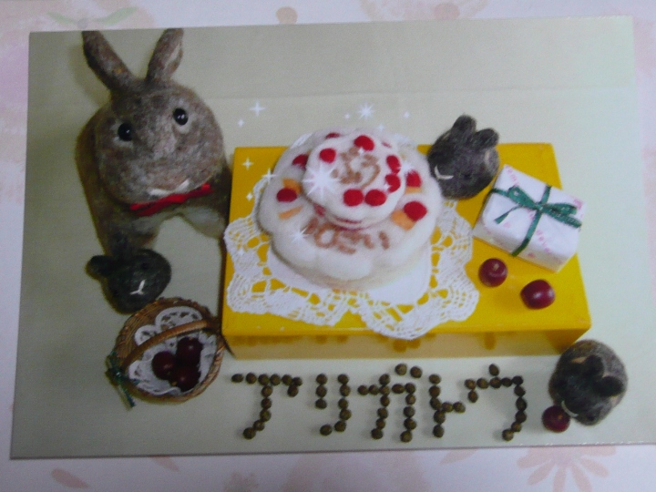 くまお堂を始めた頃からの お客様であるぷうちゃんが 先日10歳のお誕生日を迎えました!! ご存知の方も多いかと思いますが 足に不自由なところがあるけど10歳とは思えない位 つやっつやの毛並みにくりっくりのかわいい目 こんなかわいいカードを頂いちゃいました 豆ぷうちゃん’sも参加して ケーキでお祝い ![]() アリガトウの文字が●なのが です我が家の初代もこは9歳で亡くなったので ぷうちゃんにはぜひ長生きをしてもらいたい!! 犬猫に比べたらどうしてもしっかり診てくれる先生も少なく 色々大変だと思いますが、福助もぷうちゃん目標に頑張ります 月末でお疲れのくまお 熱ーいそば茶と頂きました とってもおいしく ほっこりうれしい気分になりました ありがとうです、僕もぷうちゃん目指して もっともっと頑張るです。」 ・・・何頑張るんですか?跳びシッコ?? 頑張らなくてそのままでいいのよ 福ちゃん