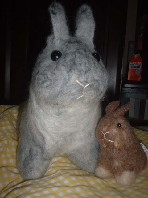 今日は僕のおかあちゃんの くまおが作った わけ分からん作品を ででーんとまとめて アップします 写真はおとうちゃんが撮ってくれるねんけど こんなん撮って遊んではったわ ヨーコさん、こんな遊び方もできるでぇ いっぺんやってみて でっかいうさぐるみも作ったで このボディ持って数日間職場に行っててん 昼の休憩にぷすぷすぷすぷす・・・ 怪しいおばはんやわ 作ったのはええけどこのネザーちゃん ほんまのネザーちゃんと比較したらでかいねん・・・ 考えてつくらなあかんよなぁ 仮称「も●さん」 ってまた?またなの?? モデルは「うさ奥」の殿こと天君 製作にかかろうと思って参考にブログを・・ と覗いた日に更新されてたタイトルが頭から離れず 気が付くこんな立派なものが!! あ、通常ではこのような立派なものは付いてないで つけて欲しい人は写真添付でヨロシク!! ここでもR15な殿は大人やで 第一夫人と泡泡のお風呂に ![]() ![]() ![]() 風呂に入れてたおかあちゃんの脳裏に 木の実ナ●と古谷一●が浮かんでいたのは 年がばれるので秘密やで なぁ、おかあちゃん正統派路線ではほかの作家さんに勝てへんと思ってるやろ? まぁ世界に一つしかない作品でオーナーさんに喜んでもらえたらええねんけどな せいぜい頑張りや