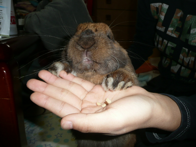 詳しくは こちら まで ご注文ありがとうございます 注文メール後返信がもしなければ ブログのほうにも「送ったで~」と 書き込んでみてください インフルエンザ初体験という有難くもない経験後 社会復帰したものの気力体力根こそぎ奪われ 先週一週間は家事こなすのがやっとでした (仕事・・・は一応していたはずだ) 一生懸命お仕えした一週間 やっと思い出して下さった様子 福助の牧草を盗み食いするもも 「ももちゃ 」筋力低下で重いと思ってたけど測ってみると もも2.4キロ 福助2キロ うん、ずっしりと抱き応えがあるはずだ 朝夕お散歩でもも福それぞれ1時間近くは遊びまわってるのだが 運動不足なのか?皆さんとこのうさちゃんって どれくらい遊んでるんでしょう? おっきくなったといえば2号 くまおがインフルエンザの真っ最中に13歳になりました 中学校もインフルエンザが猛威をふるい新人戦前で先輩に風邪移したら いけないとクラブがオフになった2号、毎日毎日練習でめったに無い休み 友達と遊びたいやろうに誘いも断って 家事にもも福と鼓太朗の世話他こまごま手伝ってくれました 熱で朦朧とする中 「えー、13年前は腹の中におってんでー」 「あんなちっこかったのに」 と思いながらも そういえばもう背は変わらないよなぁ 氷枕や飲み物用意してくれたりする姿見て あぁ、もういつまでも子供やないよなぁ 少しずつ成長してんねんなぁと 今回すごく実感しました 病み上がり後に晩御飯作って皆で食べたとき 「あー やっぱりお母ちゃんのご飯美味しい」 弁当や外食が続いたから出た言葉やけど この褒め上手め、母ちゃん嬉しいぜ おやつもらって美味し!!の福ちゃん あんた何でこう毎回焦げた色で写るかなぁ・・・ ももはお目目くっきりはっきりぱっちりの めっさ美人に撮れるので 落差が・・・ 「僕全然気にならへんもーん」 ま、いっか どんな顔でも元気が一番!! PR